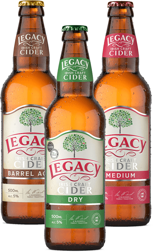Legacy Cider offers an award-winning range of Irish craft ciders made with love and tradition by our 3-generation family of apple growers in Co.Waterford, Ireland.